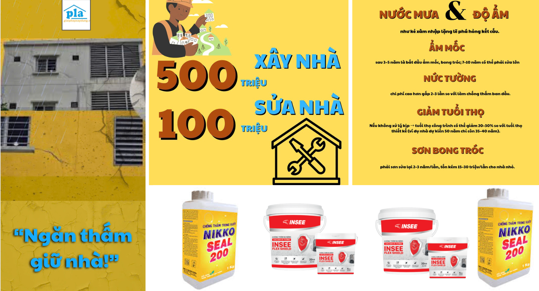 – Làm chống thấm ngay từ đầu tuy tốn thêm một khoản nhỏ nhưng tiết kiệm rất lớn về lâu dài, tăng tuổi thọ nhà, giảm chi phí sửa chữa và giữ giá trị tài sản.