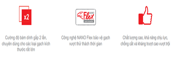 • Keo dán gạch công nghệ Nano Flex giúp chống trượt, dễ điều chỉnh gạch khi ốp lát.