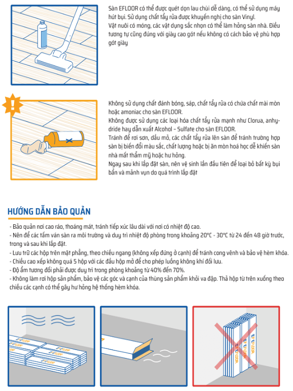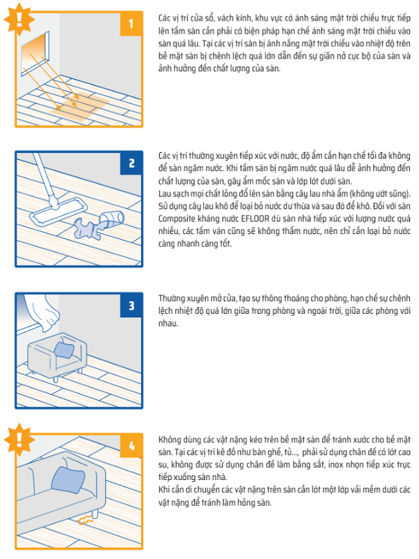 - Hạn chế để nắng chiếu trực tiếp vào mặt sàn SPC EFloor
