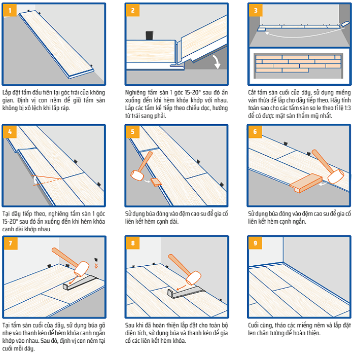 - Kiểm tra kỹ tình trạng ván và hèm khóa trước khi lắp đặt